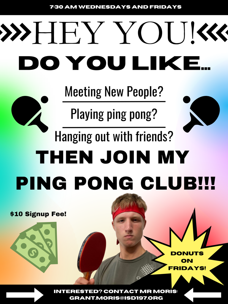 For those interested in joining Ping Pong club, please connect with Joshua Schomer or Grant Moris.